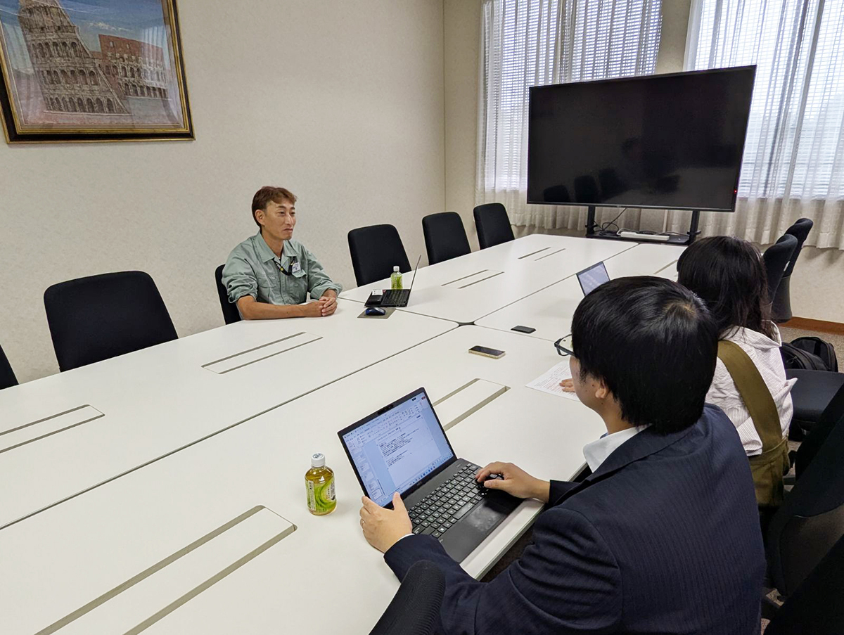 編集部は、弊社営業・土田とともにプロテリアル様の茨城工場を訪問。自動車部品事業部の郡(こおり)様にお話を伺い、TSKとお取引いただいた背景、物流現場での課題、そして包装がどのように日々の業務に寄り添えているかについて教えていただきました。