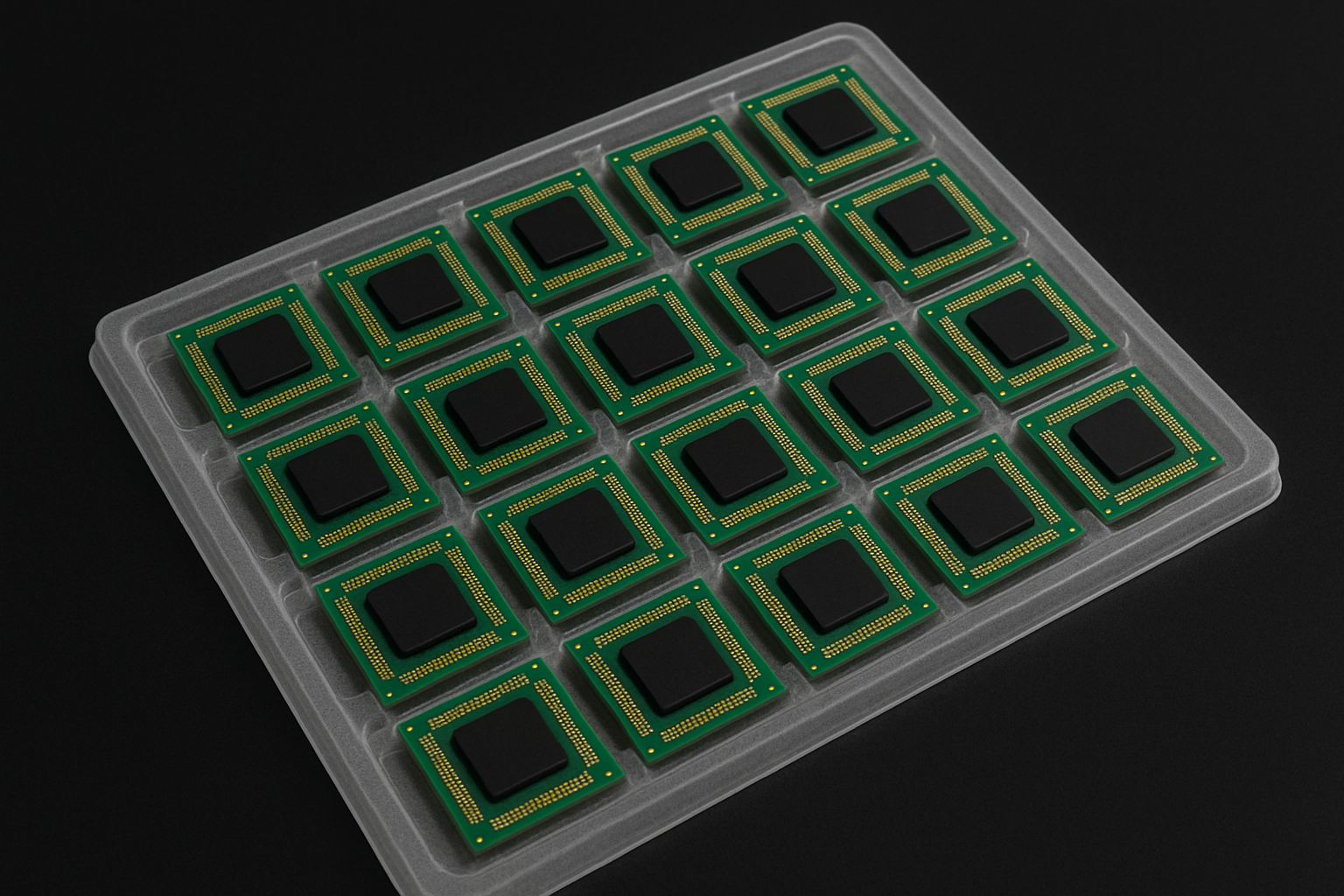 1.コンテナ内の直置きから真空成形トレイに保管方法を変更することで、箱と製品の摩擦によるキズ、箱内の汚れが製品に付着するといった不具合を防ぎます。